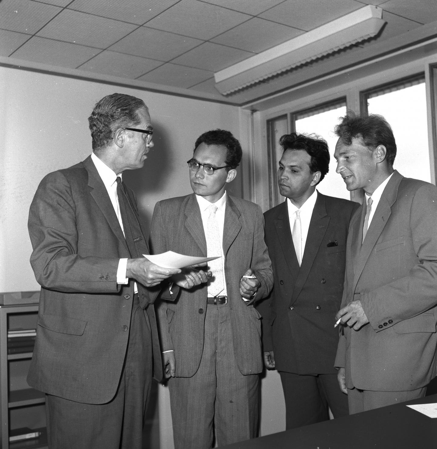 July 1960 – Soviet visitors arrive at CERN | Following CERN’s decision in 1959 to welcome Soviet scientists, the first long-term visitors from beyond the iron curtain arrived on 18 July 1960 for a stay of six months. Vladimir Meshcheryakov and Rostislav Ryndin, from the Theoretical Physics Laboratory in Dubna, joined CERN’s Theoretical Studies Division, where they continued to work on projects begun in the USSR, while experimentalist Yuri Sherbakov, also from Dubna, assisted in running the 600 MeV synchro-cyclotron. See the July 1960 CERN Courier for more details. |